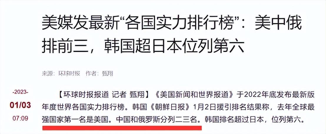 这种观点也得到了一部分美媒的认可,环球网报道,在《美国新闻和世界报道》发布的“全球实力排行榜”中,他们将我国排在了第二名,超过了俄罗斯。虽然因为这份榜单的前十里没有印度的身影而引起了大众的质疑,但也不妨碍这代表着全球的另一种声音。