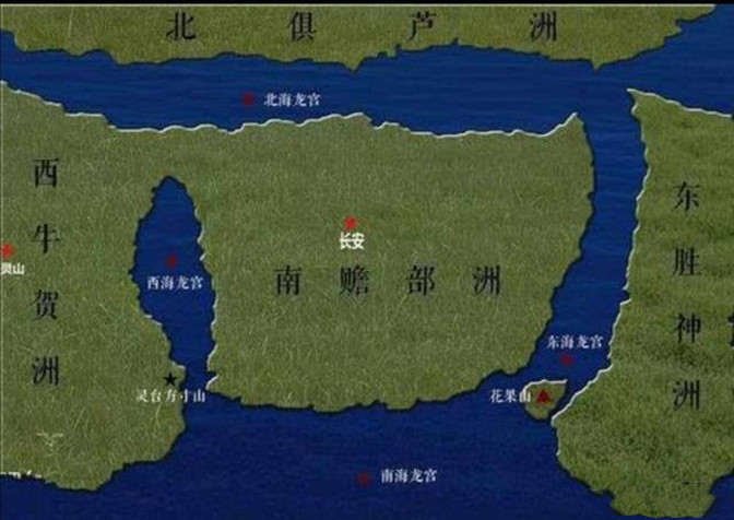 再对比,刚才讲的佛经宏大的世界观,动不动就上百万公里的距离起跳,就算划一小舟,划了十年光景,漂洋过海,孙悟空也不可能到达西牛贺州,可见,吴承恩只是借用了佛经中的地理概念仅此而已!