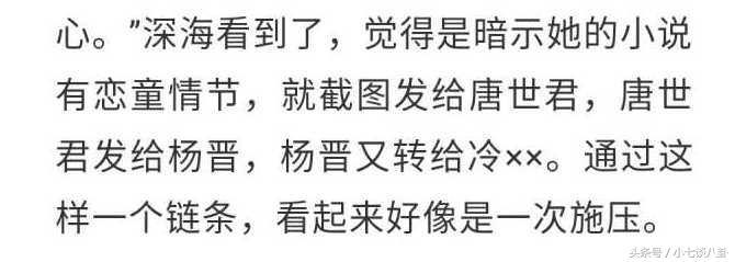 事情到这里已经不仅简简单单地涉及网文圈了。深海的父亲也开始介入,并且出面找到了”烨风迟”的导师“谈话”。当然了,谈话内容到底是希望单纯调解还是“学术施压”就不得而知了。