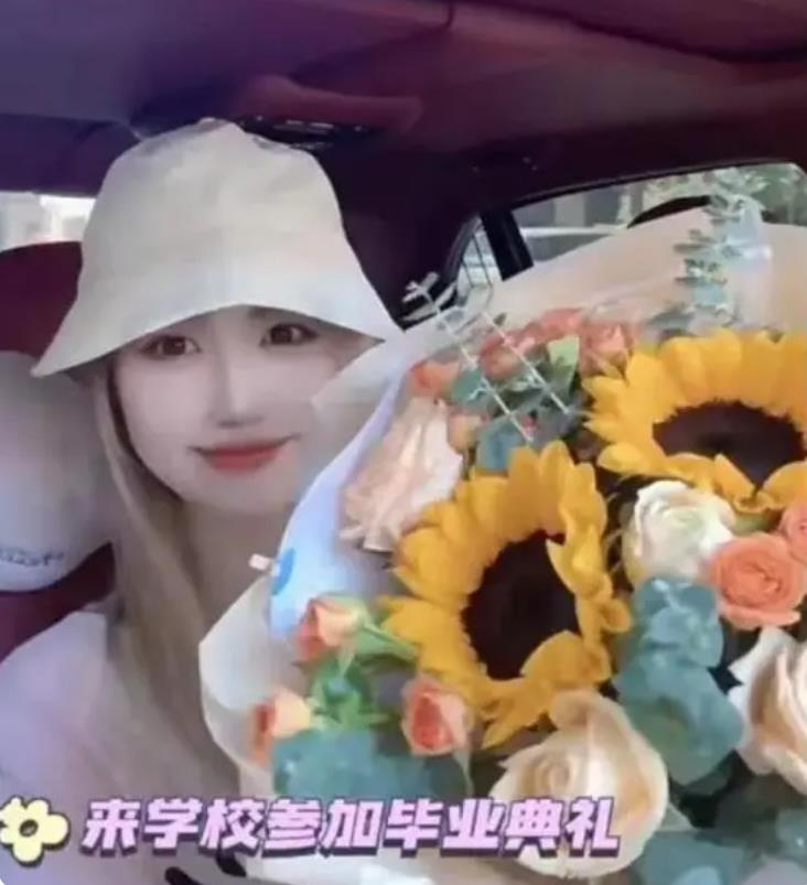 为了祝贺女儿顺利毕业,马蓉也十分有心,买了一捧花来送给女儿。