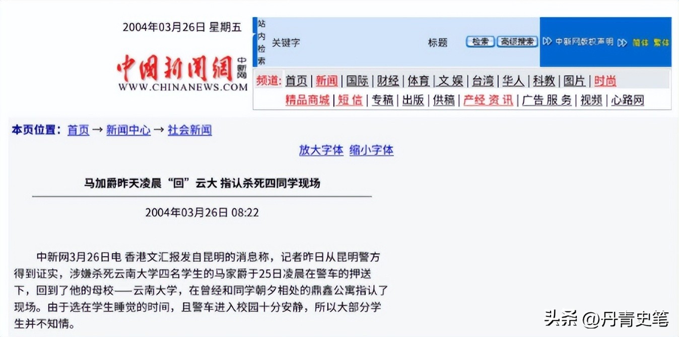 中国新闻网 《马加爵昨天凌晨“回”云大 指认杀死四同学现场》