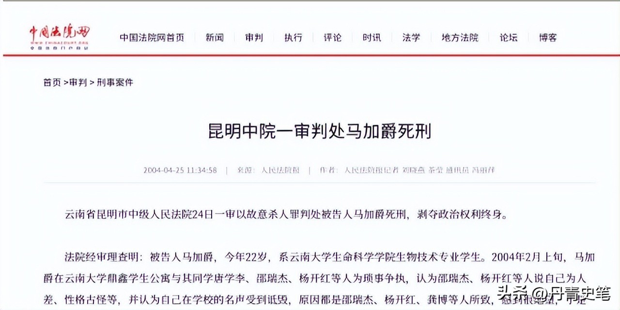 中国法院网 《昆明中院一审判处马加爵死刑》