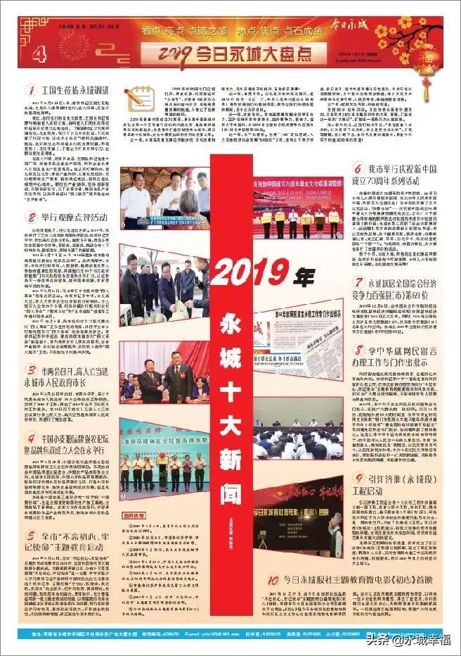 告别2019,迎来2020。本报特推出新春特别策划,采集我市2019年发展历程中的大事、要事,汇编成这一年的“大事记”,汇聚成一部精彩的永城故事。