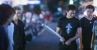 《我话事》,开头几位主角长大后徘徊在夜市街头还准备去砍人;--(《古惑仔1电影原声大碟》收录)