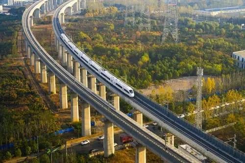 又名京沪高铁,由北京南站至上海虹桥站,全长1318千米,设24个车站,设计的最高速度为380千米/小时。截至2017年9月,京沪高速铁路的运营速度350千米/小时。截至2020年1月16日,京沪高速铁路已开通运营8周年,共发送旅客11亿人次。