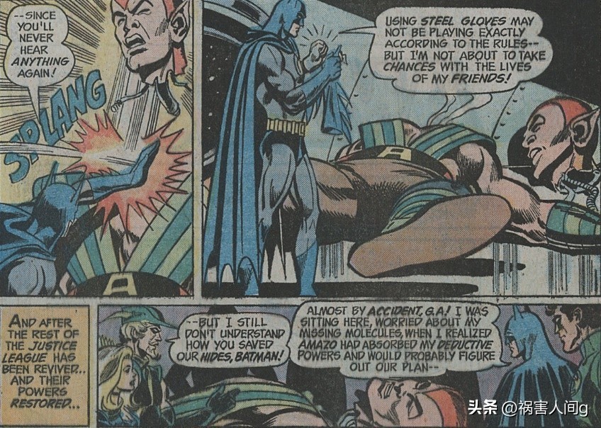英雄们都不是亚魔卓的对手,虽然失去了一半的智慧,但是蝙蝠侠仍然击败了亚魔卓。