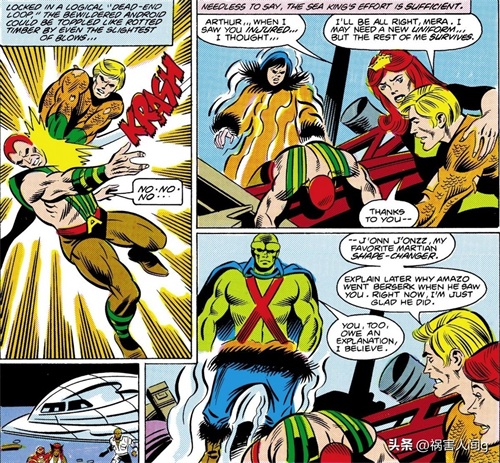 亚魔卓击败了所有新的正义联盟成员,但是被海王和火星猎人两名老队员击败了。