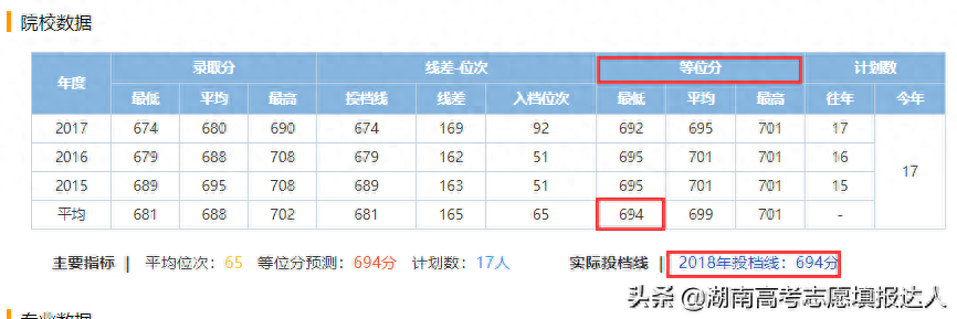 为了更客观的选择大学。湖南高考志愿填报达人刘文达建议家长与学生最好将近三年你想去的学校的等位分算出来。