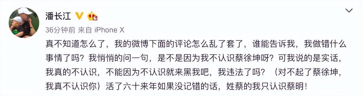 无奈之下,潘长江也只好回应了一句:活了60来年,如果没记错的话,姓蔡的我只认识一个蔡明。