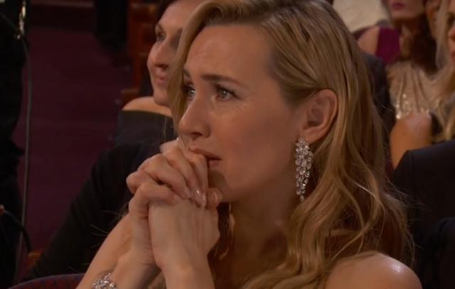 小李子凭借《荒野猎人》,拿下奥斯卡最佳男主角。凯特在台下,紧握小手眼泛泪花,为他开心激动兴奋。