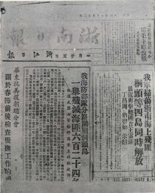 注2:1958年1月,守备第十七旅旅部与温州军分区机关合并为温州军分区机关,守备第十七旅番号撤销。其所辖的五十一团改编为南麂守备团,自洞头进驻南麂岛。2月5日,南麂守备团改称守备第八十四团。