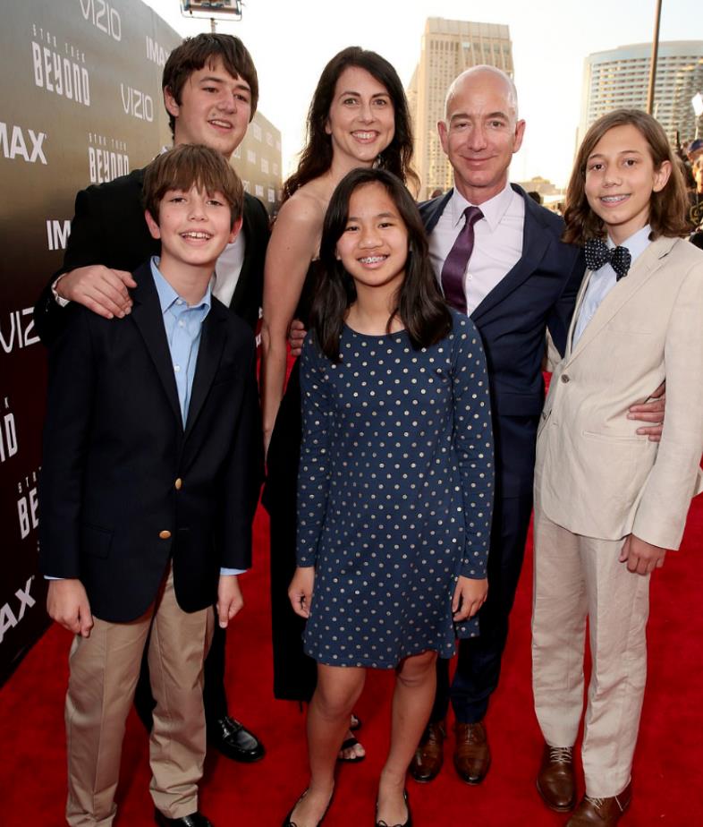 更别说麦肯齐还为贝索斯生下了3个可爱的儿子,心地善良的她还收养了一名亚裔女孩,而那时的贝索斯也是宠妻狂魔一个。