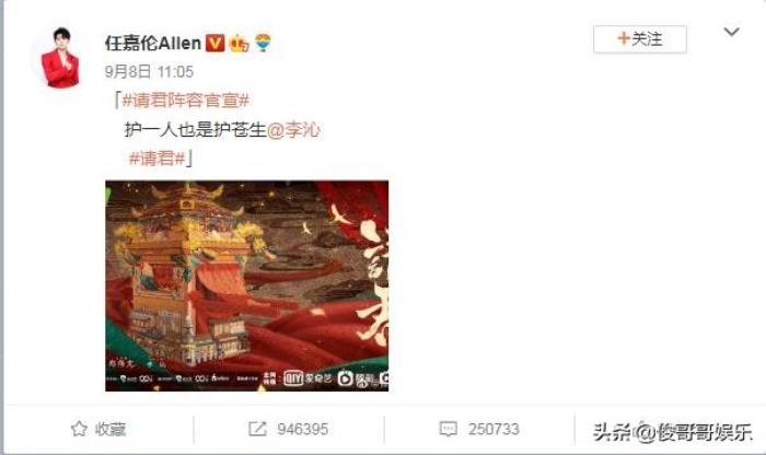 9月8号,任嘉伦再次发动态官宣了新剧《请君》!