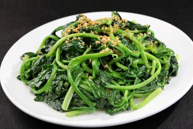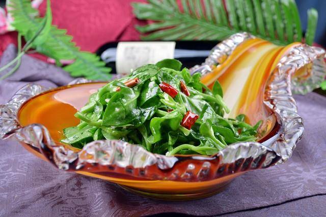 将空心菜洗净摘去老叶,进入沸水中焯一下,捞出,用凉开水浸凉盛入盘中。锅上火,放入植物油,放入葱段儿,煸出香味儿,捡出葱段,将锅中的葱油倒入碗内,冷却后放入盐、糖、白醋、味精、蒜泥、五香粉拌匀,浇在盘中的空心菜上即可作用