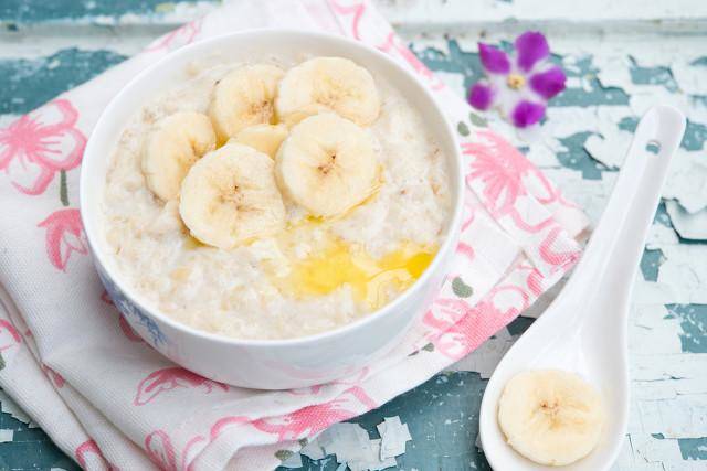 香蕉200克,粳米50克,香蕉剥皮切成薄片。将粳米淘洗干净煮粥,待粥快煮成时,放入香蕉片,待煮十分钟即可