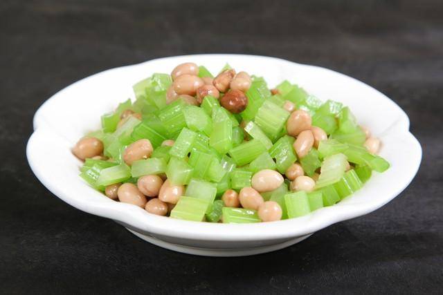 芹菜含有丰富的维生素B和纤维素,花生富含B族维生素和油脂,此菜可以有效的防治便秘
