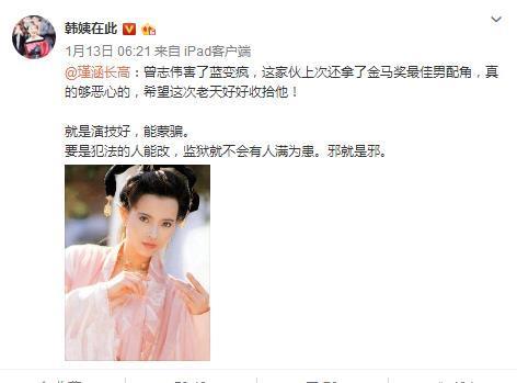 曾志伟最近可谓是处在风口浪尖上,先是蓝洁瑛视频自述曾经遭到曾志伟的侵犯,随后曾志伟做出澄清,曾志伟圈中朋友谭咏麟、周杰伦等也都表示相信曾志伟的为人,而随后一个圈内人“韩姨在此”站出来不断曝光曾志伟的为人,而且所曝内容看起来都有鼻子有眼,思路清晰,亲身经历一般。