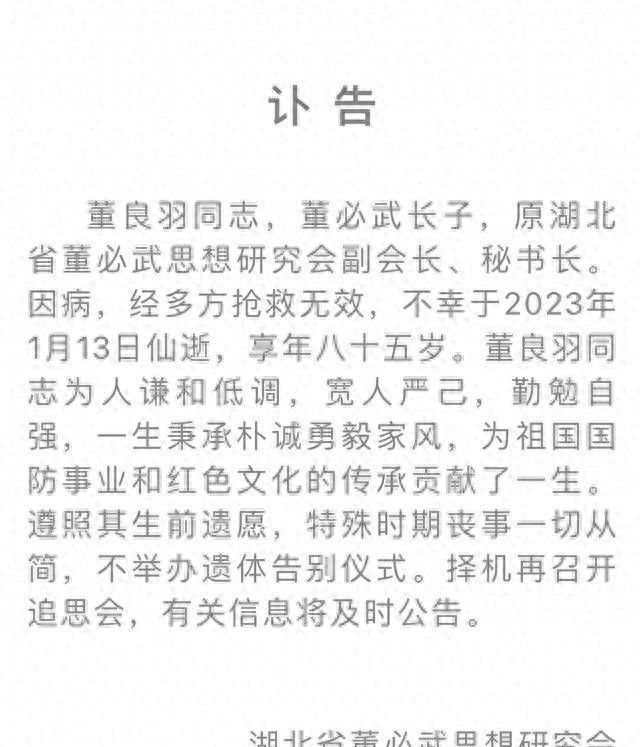 讣闻丨董必武长子董良羽逝世,享年85岁