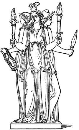 她的身世众说纷纭,有佩尔赛斯与阿斯忒里亚之女、宙斯与阿斯忒里亚之女、阿斯特赖俄斯与厄俄斯之女、德墨忒尔之女、倪克斯之女等多种说法。但无论出身如何,有一点是可以肯定的——赫卡忒既尊崇又强大。克洛诺斯时代,赫卡忒便在天界、海界、冥界各有一份权柄,到了宙斯时代,更是被安排了无论向谁祭祀都需要连带给赫卡忒一份祭品的殊荣。论个人战斗力,在巨灵之战时赫卡忒用火把烧死了巨灵克吕提俄斯,而她的弟子喀尔刻能赋予凡人永生,徒孙美狄亚能让日月停转、江河倒流,这位魔法女神、火把女神、道路女神、机遇女神堪称魔武双修。