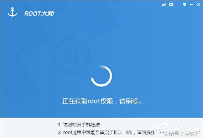 2、小米手机连接成功后,点击“一键Root”开始Root!这时候Root大师会提示“正在获取Root权限,请稍后。。。”。