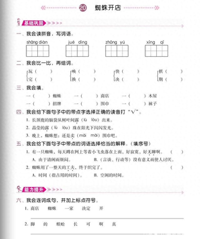 二年级下册《蜘蛛开店》,懂得做事要踏实,不能知难而退的道理