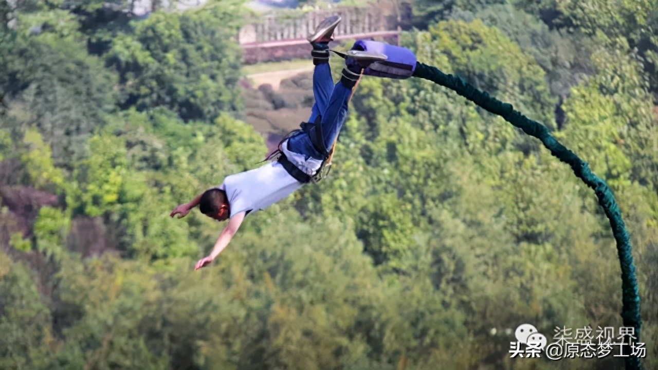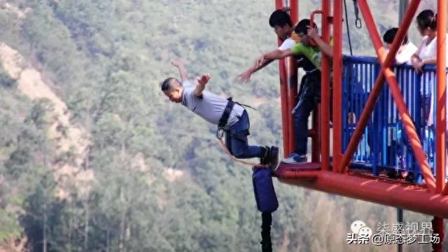 蹦极,勇敢者的游戏。竖起大姆指,为你点赞。