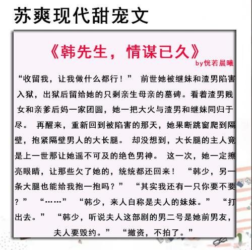 3、《韩先生,情谋已久》作者:恍若晨曦