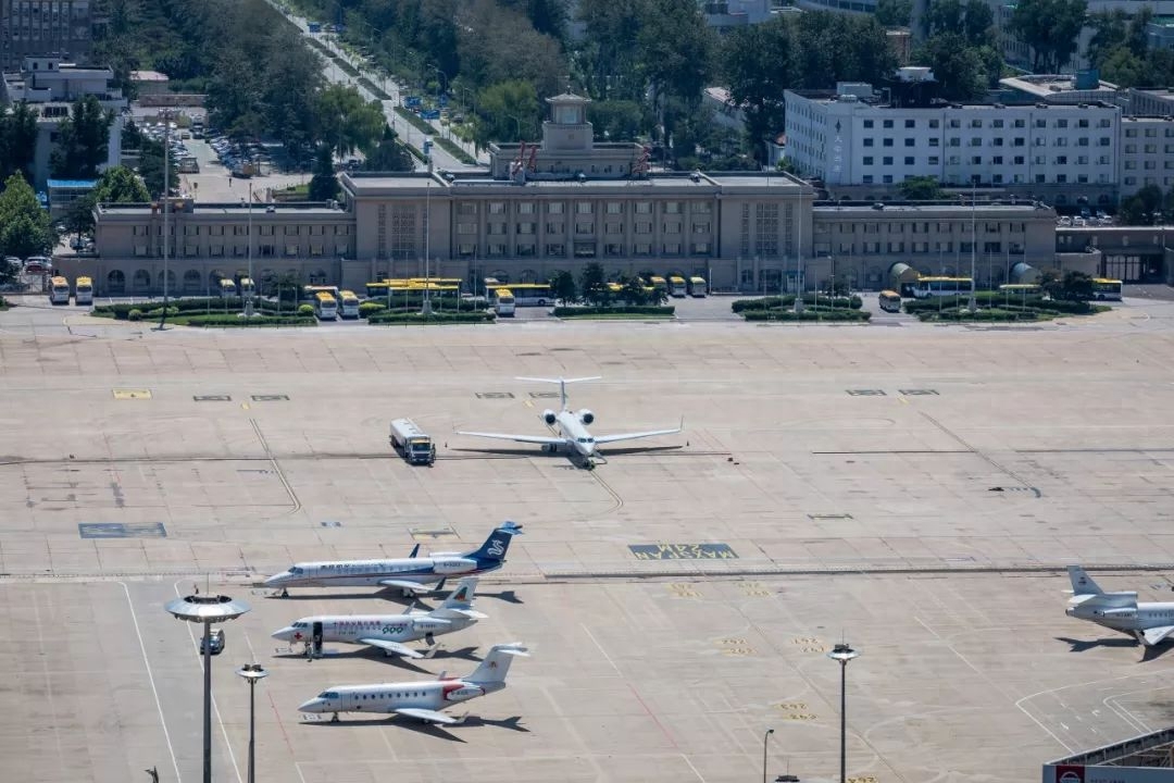 首都机场第一座候机楼,楼前的草坪已不再,曾经的螺旋桨飞机已经被喷气式公务机取代。