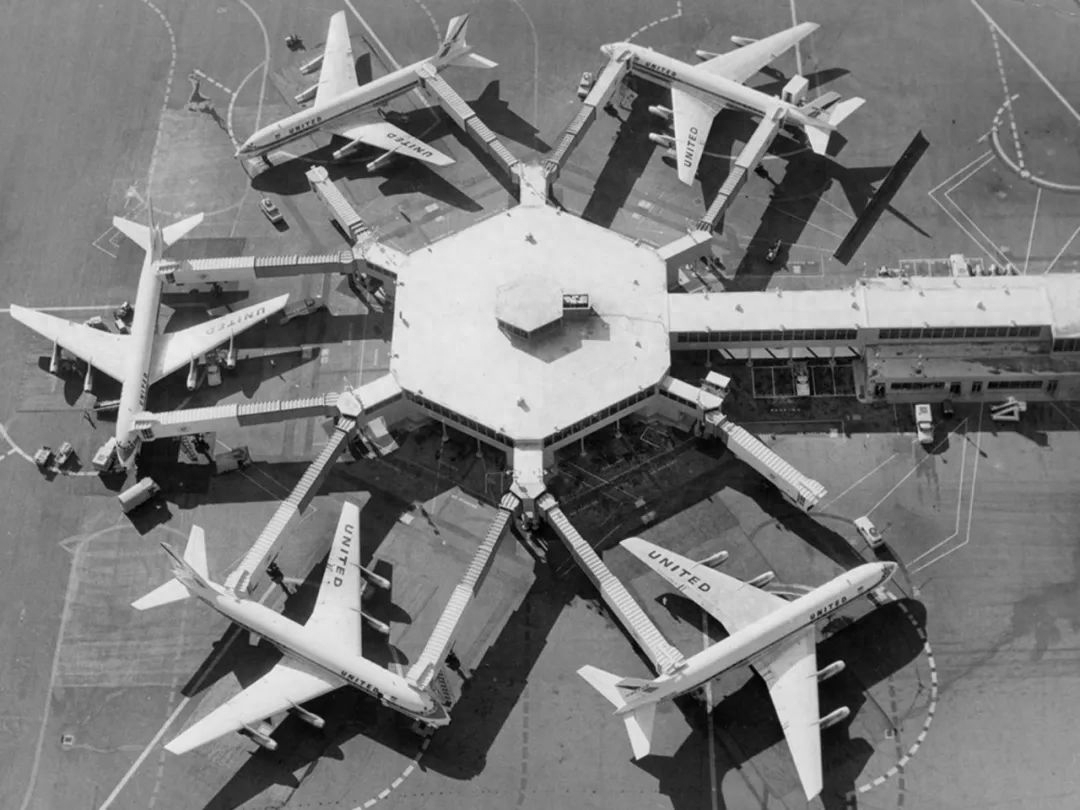 在历史的长河中,机场设施的变化和飞机技术的进步同步向前。在20世纪五六十年代这20年里,飞机发生了颠覆性的变化——前半段,航空还是螺旋桨飞机的天下;后半段,4发喷气式客机波音707就已经停满了旧金山机场的廊桥。