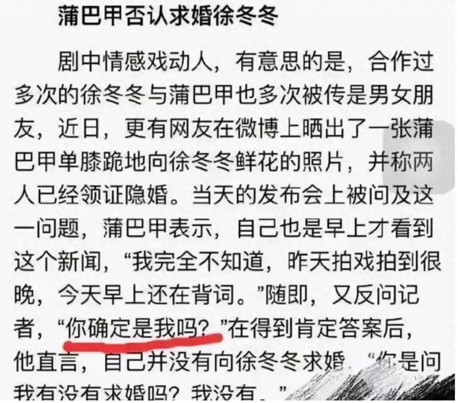 起先是媒体在社交平台转发了一则蒲巴甲求婚的照片,没想到正主蒲巴甲在下面回复:你认错人了?