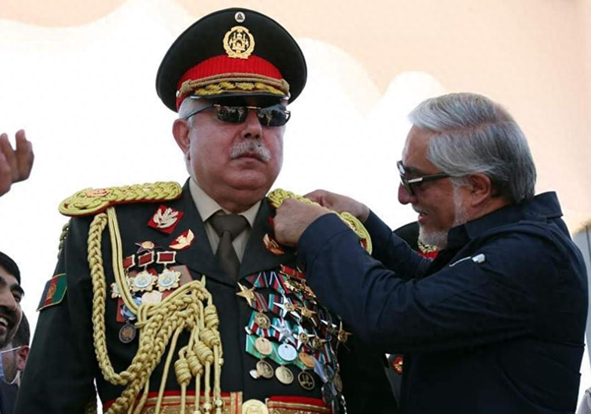 2014年4月,杜斯塔姆被时任阿富汗总统阿什拉夫·加尼任命为国家第一副总统。2020年5月7日,为了与政治对手、前国家首席执行官阿卜杜拉达成政治协议,加尼宣布授予杜斯塔姆元帅军衔。在授勋现场,多位阿富汗高官为其佩戴军功章,而满身勋章的杜斯塔姆也是满面红光,如同“勋章帝”勃列日涅夫一般。这一场景也被各大媒体所报道,成为了许多人茶余饭后的最好谈资。