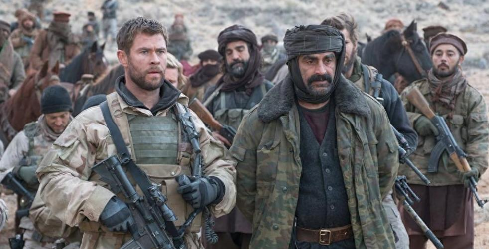 《12勇士》中的杜斯塔姆(右),由演员纳维德·内加班饰演