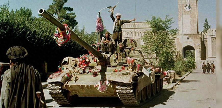 当多股势力还在相互鏖战之时,由毛拉·奥马尔建立的塔利班已经开始了攻城掠地的计划。当1996年新年到来之时,原本打成一团的各方势力惊讶地发现,名不见经传的塔利班早已占领了阿富汗70%以上的领土,而喀布尔即将成为他们最后夺取的目标。在一阵象征性的抵抗之后,1996年4月28日,喀布尔被塔利班完全攻占,“阿富汗伊斯兰国”中央政府宣布垮台。