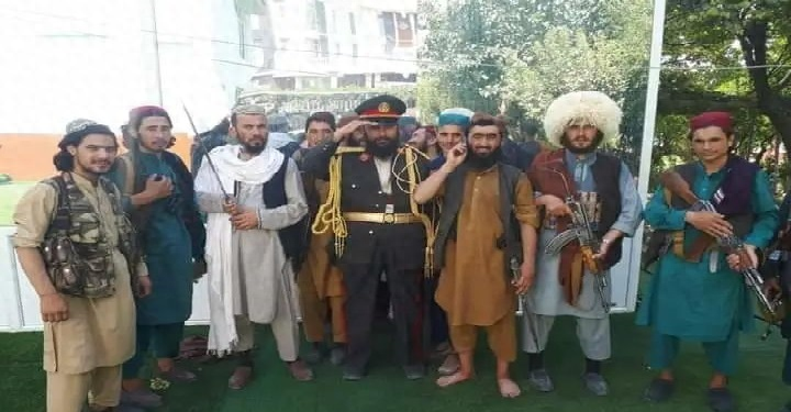 不知是不是多年没有打仗的原因,杜斯塔姆和他的乌兹别克族民兵在应对塔利班这次攻势期间战斗力全无,节节败退。就连自己的大本营——北部巴尔赫省首府马扎里沙里夫也被塔利班所占领,他在闹市区的元帅府也被塔利班“抄了家”。更过分的是,塔利班居然搜出了他在授勋仪式上所穿的那套军礼服,之后一位成员还穿上它与大伙合了个影,不过这画风确实有点辣眼睛——