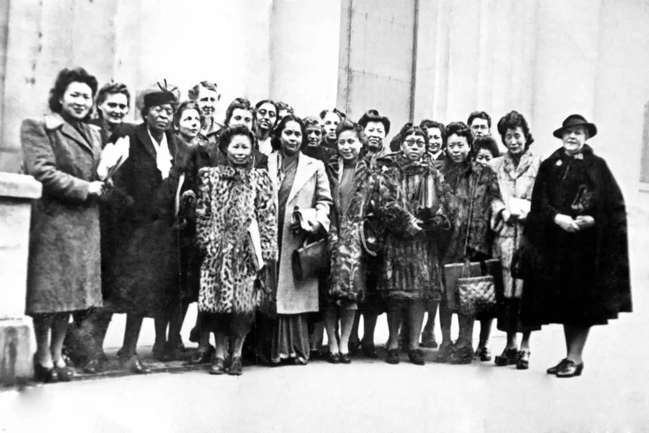 1945年11月,李佩(左一)在法国参加第一届世界女妇女大会时的照片(照片提供:李伟格)