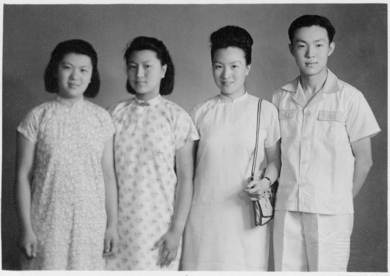 二十世纪四十年代,李佩(右二)与妹妹和弟弟(供图:袁和 郁百杨)