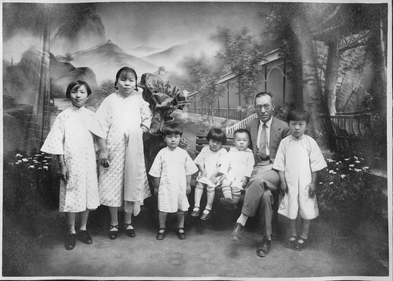 ►李佩全家,从左至右:李佩、母亲王慧芝、李佩珊、李佩环、弟弟李佩璋、父亲李宝龄、李佩珠。