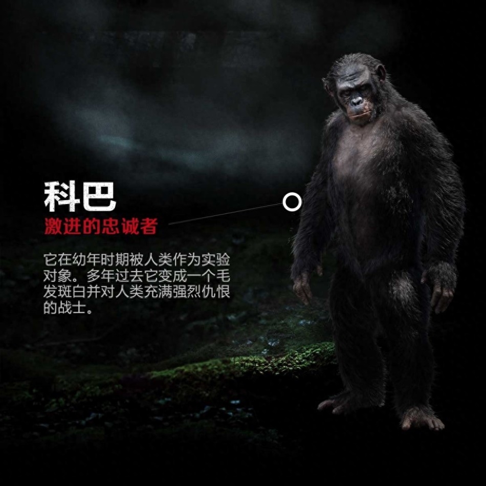 凯撒本该和芸芸众猿一样,只是供人观赏或是试验的对象。但机缘巧合,因为它的母亲曾被科研中心用来做可以提高智力的基因药物实验,使其受遗传影响而成为一只智力超群的黑猩猩。