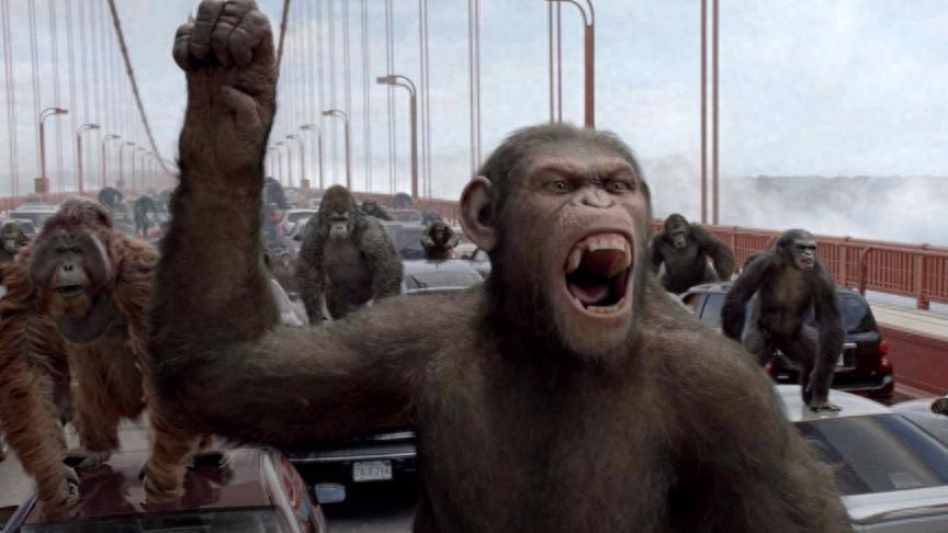 猿族真正崛起虽然是科幻,但是在人类社会里也不是没有可能。要知道以猩猩为代表的灵长类动物可是与人类关系最近的群体,如果人类不善待他们,继续对他们进行无端的惩罚、责难和迫害,总有一天他们会像凯撒一样对人类说“No”。