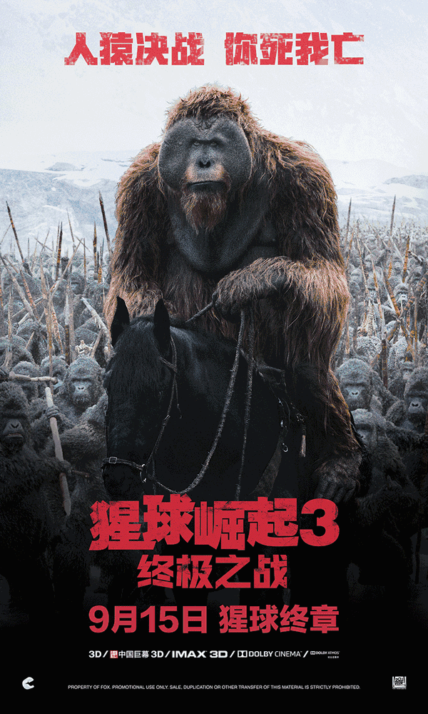 《猿族崛起3:终极一战》不仅是人类与猿族之间决定命运的一战,也是凯撒内心的一场斗争!相比冷酷的上校,凯撒丰富的情感和内心斗争是一座桥梁,让银幕前的影迷们引发共鸣!