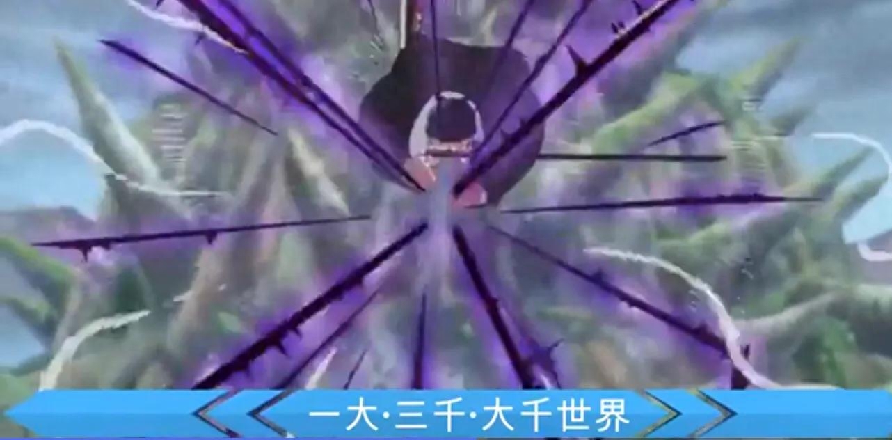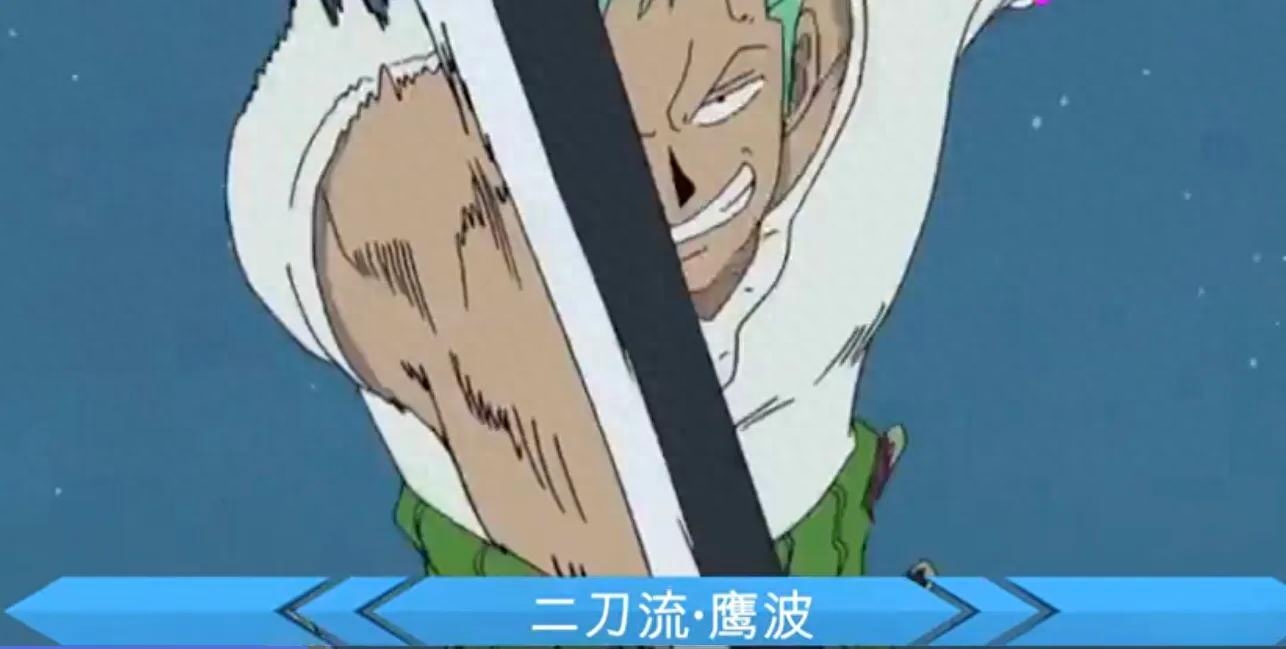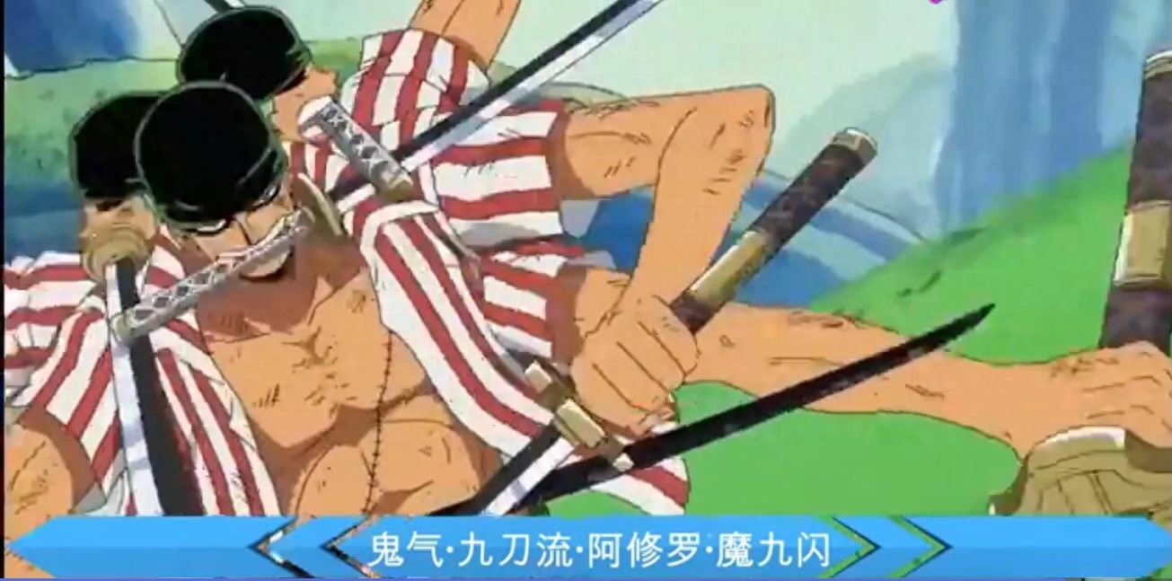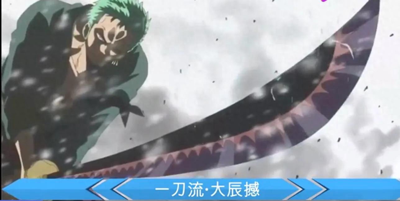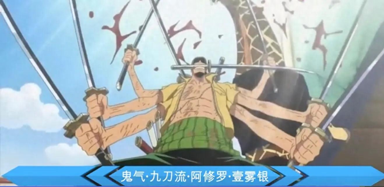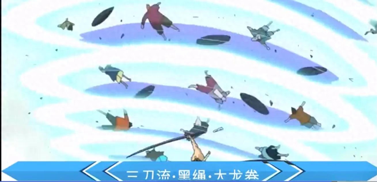 吟咏:“九山八海,无我不断者…三·千·世·界!”第一次使用是在和鹰眼打得时候,后来随能力提升成为三刀流最强奥义之一