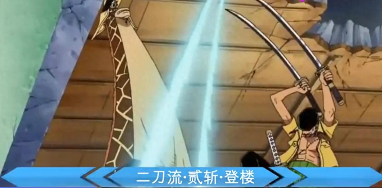 用双刀插住弗兰奇的超重双节棍给予对手打击。该招在对付魔人奥兹时使用