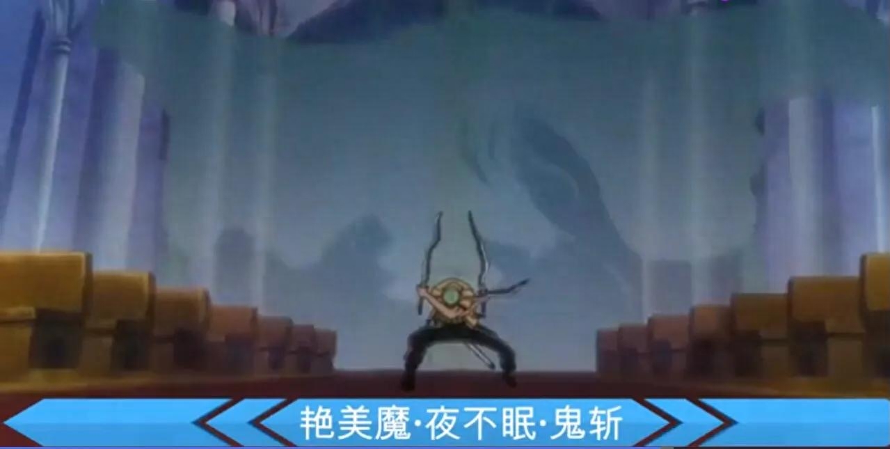 鱼人岛时使用的招式,挥刀发动一个月牙斩,迅速砍向对方。