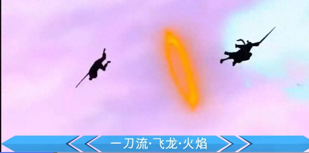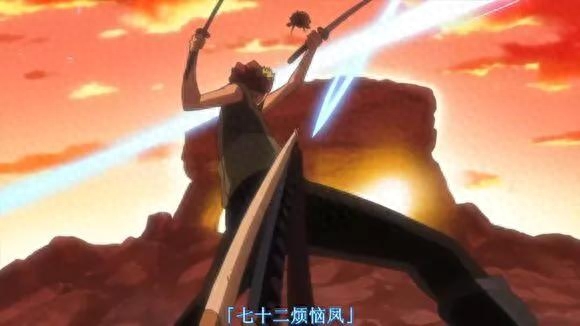 “烦恼风”的三刀流版,三股“斩波”的蓝色斩击发出后会形成更大的凤凰般的剑波攻击目标。
