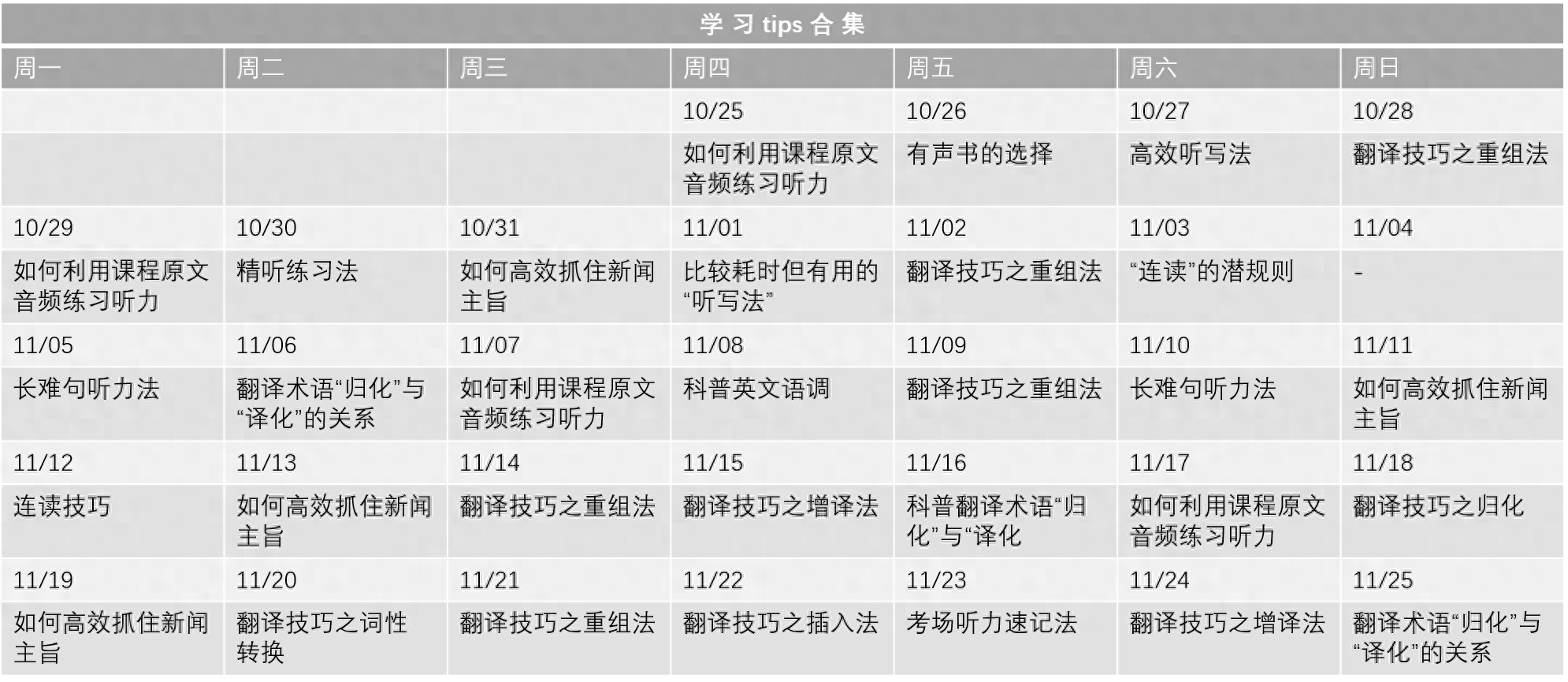 给予与今日练习匹配的学习tips。举个例子,今天给的是听力练习,则提供一个听力小技巧。