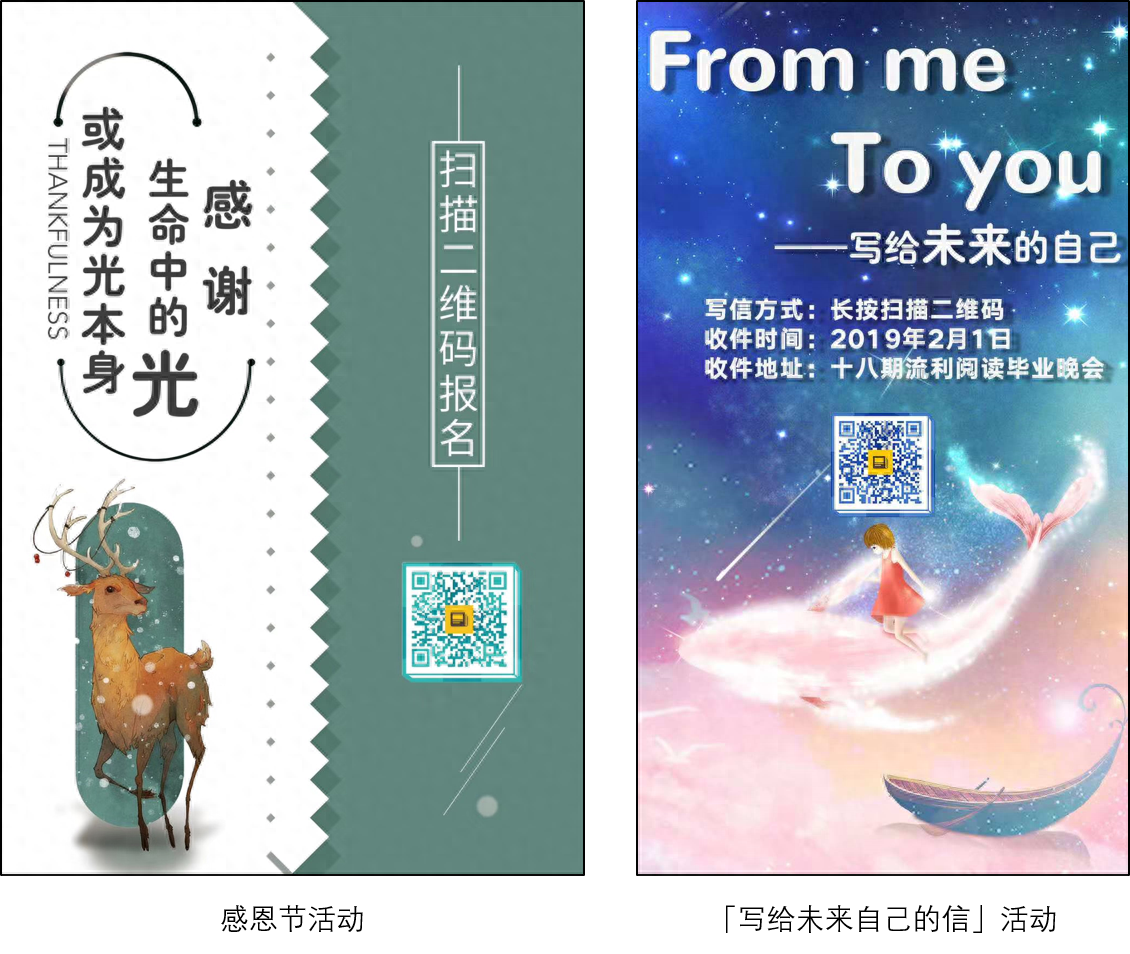 「感恩节活动」:分享学习心得、留下想感谢的故事。「写给未来自己的一封信」:将想对未来自己说的话写下来,当100天毕业晚会来临时,将会收到运营者寄来的这封信。