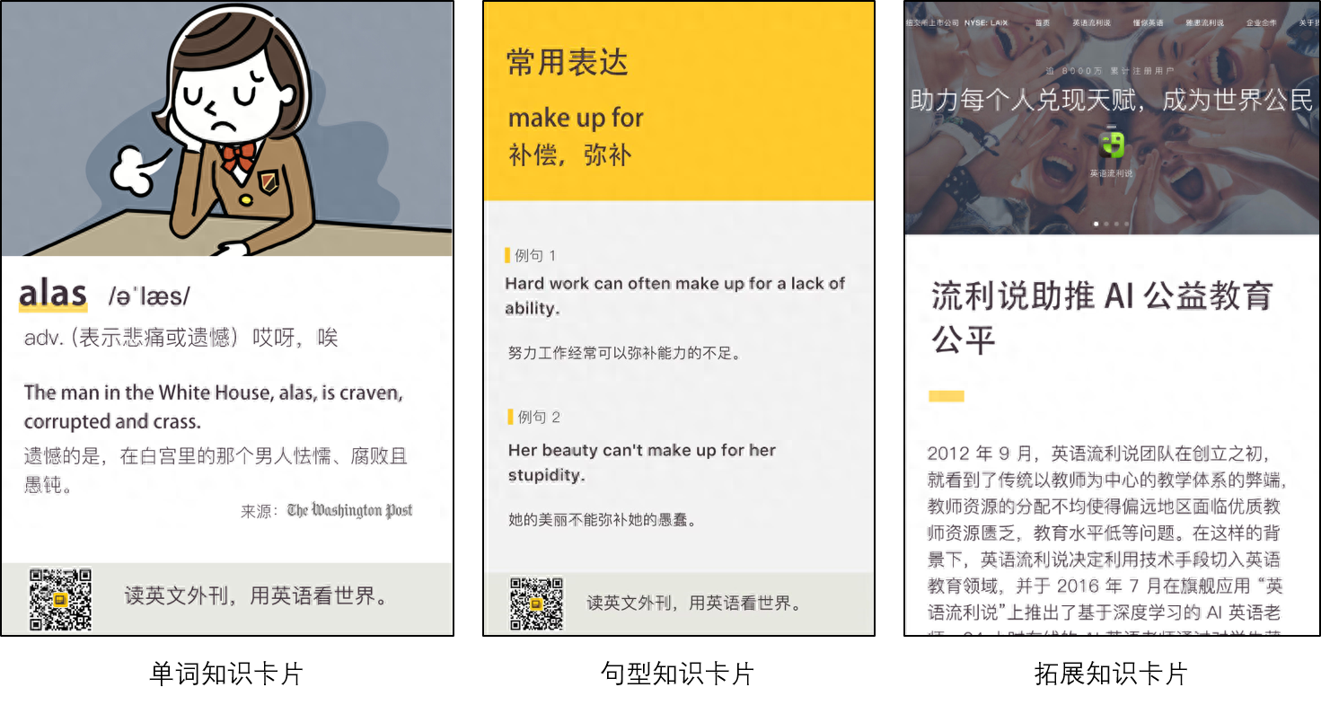 知识卡片是由当日外刊中的重要词汇、句型和拓展知识制成的卡片,供用户收藏学习以巩固所学知识。