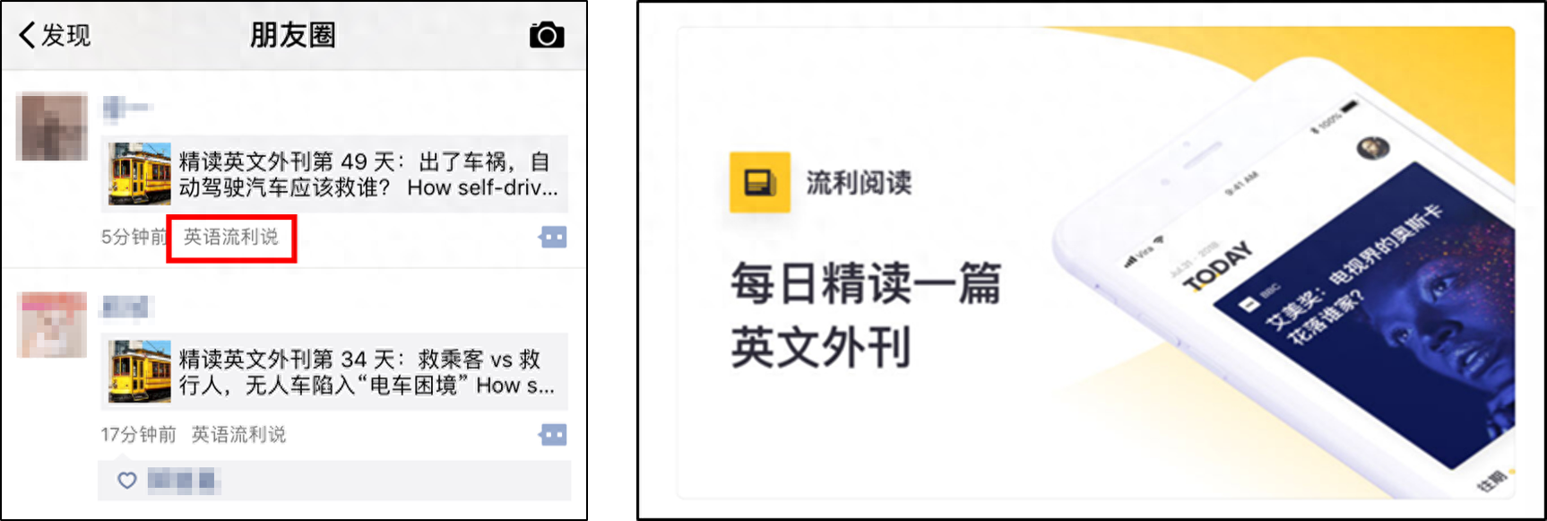 仔细看,可以发现被朋友圈的链接下方有一行小小的「 英语流利说 」,这其实是「 流利说 」旗下的英语阅读课程 —— 「 流利阅读 」。