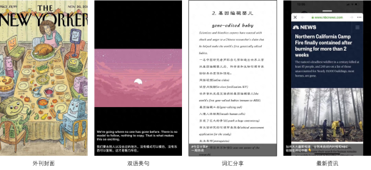 摘取外刊中的一段原文,用以布置听写、翻译或口语练习,帮助用户利用阅读课程提升听、说、写能力。