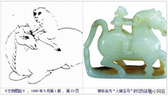 我从超星图书馆中找出了一张“马上封侯图”,可惜图片不太清楚。我又从一个网站看到一张汉代玉雕作品的图片,被标明为《人骑玉马》。但我看了半天,觉得马上的这个人有些像一只穿着衣服的猴子。汉代雕塑,在写实方面是很准确的,而这个玉雕的人和马比例很不相称,因此我疑心,这是一幅“猴骑玉马”。可惜我没有见到过这件玉雕,也没有见到过更大一点的摄影,不能判断。这里将这幅小图也贴出来,以求教于博雅之士。